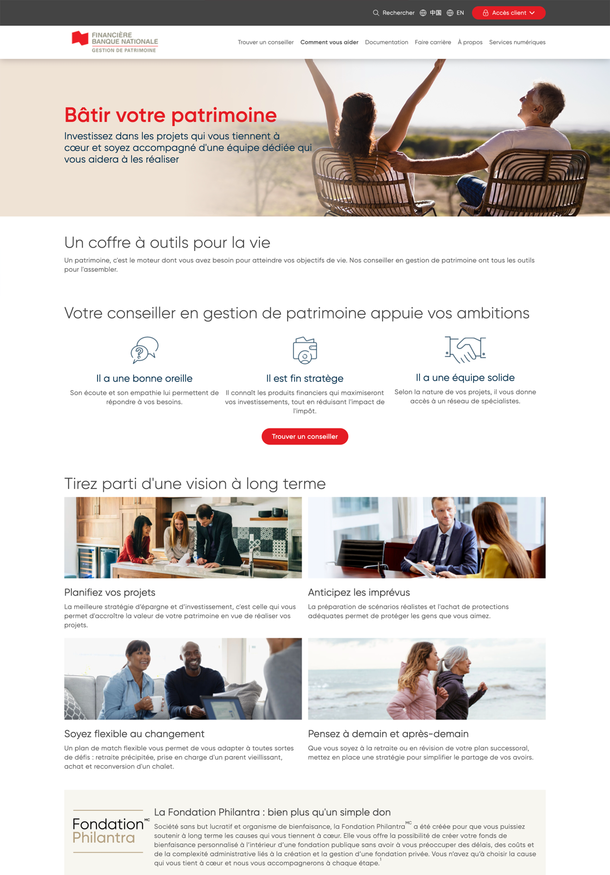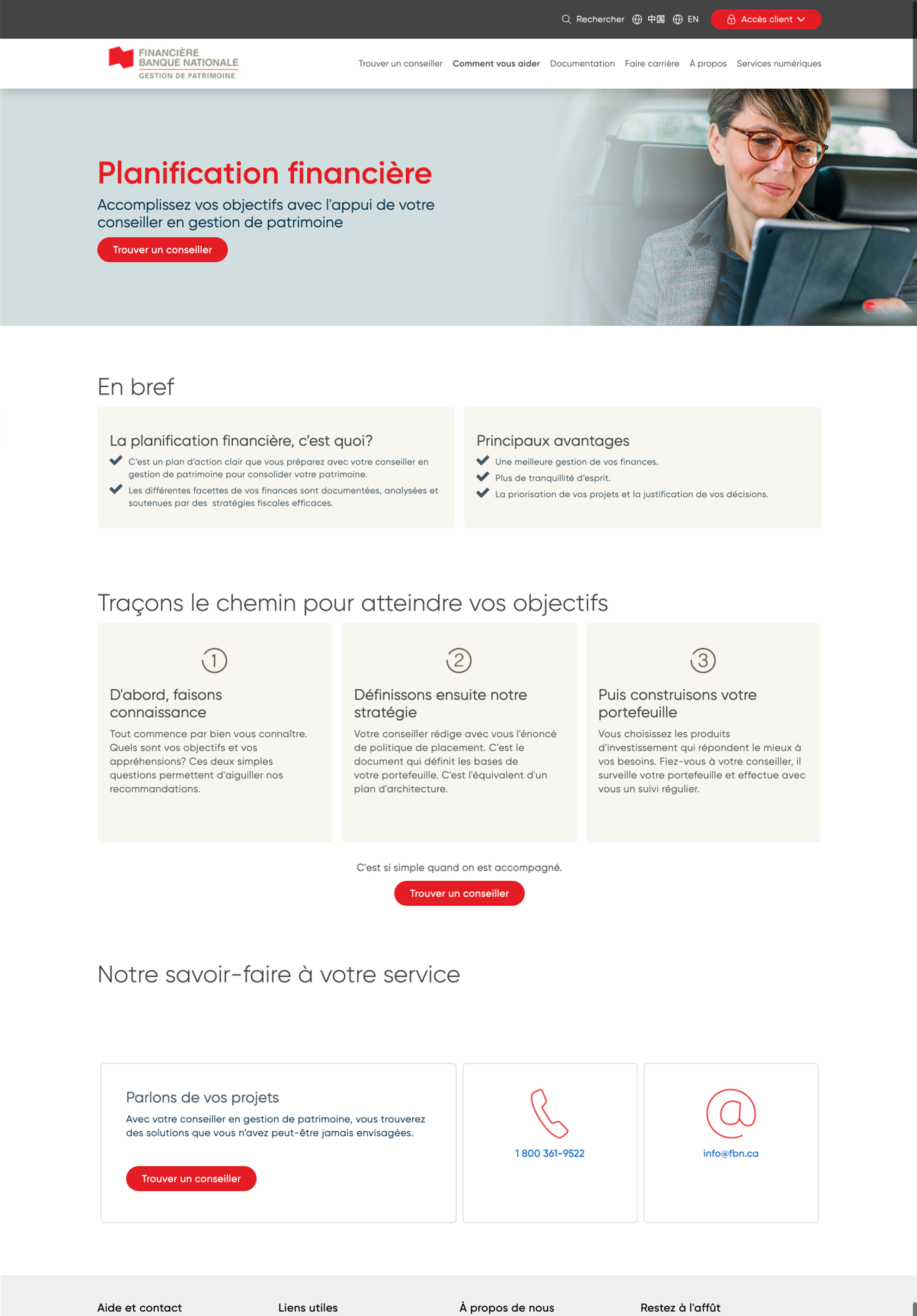 Design et déclinaison de pages pour le site de la Banque Nationale du Canada.