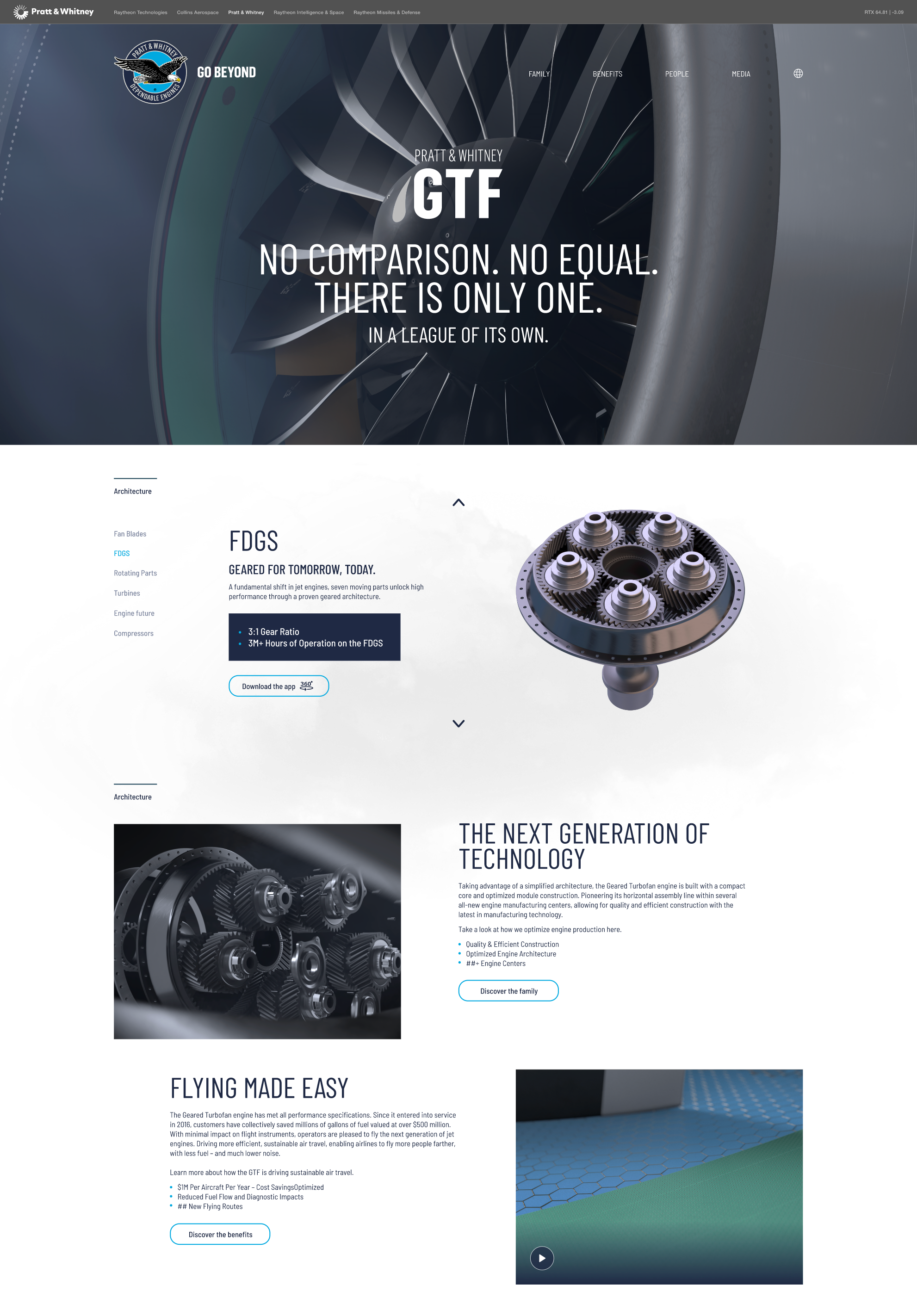 Design et déclinaison de pages pour le site de Pratt & Whitney Canada, leader dans la fabrication de moteurs pour l’aéronautique.
