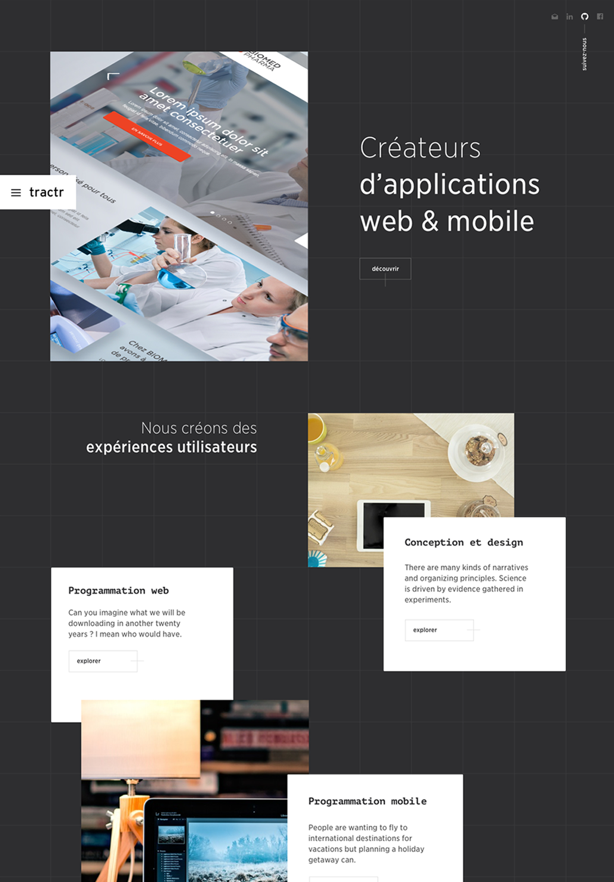 Direction artistique et design du site vitrine de l’agence digitale Tractr.